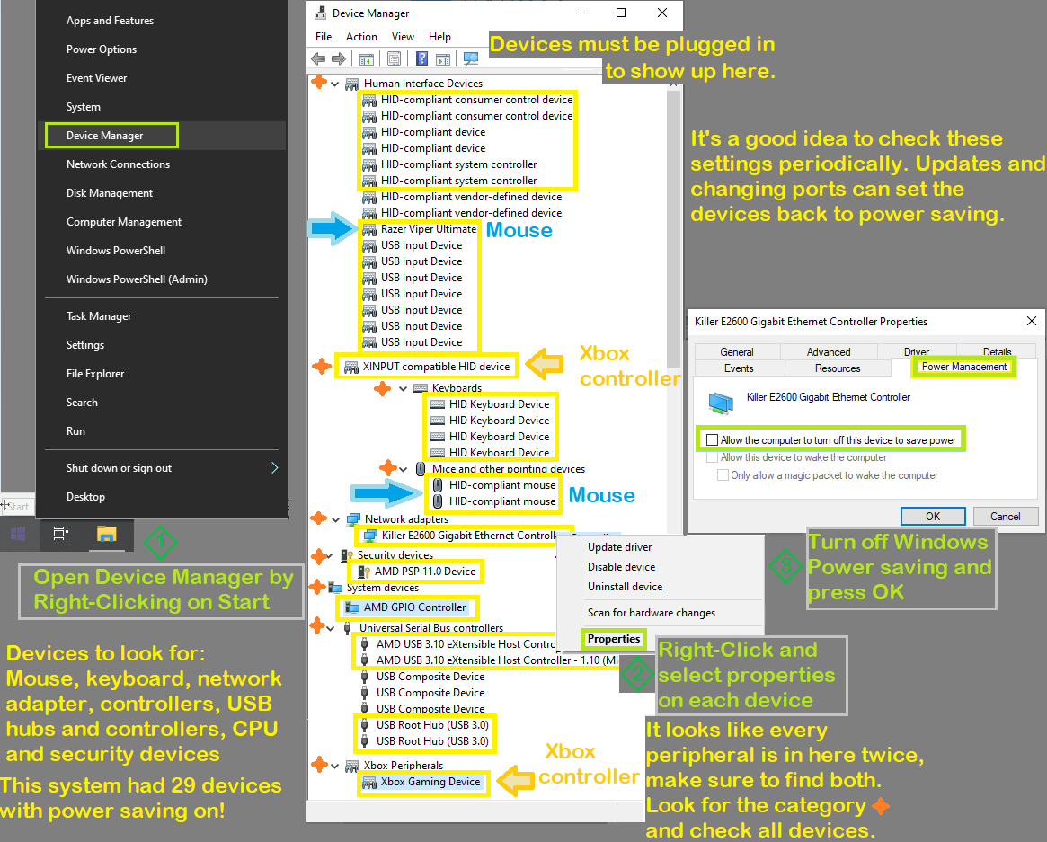 Have you combed through Device Manager to make sure power saving is disabled for every device? There is a security feature in the AMD chip that has power-saving on by default. download/file.php?id=3095