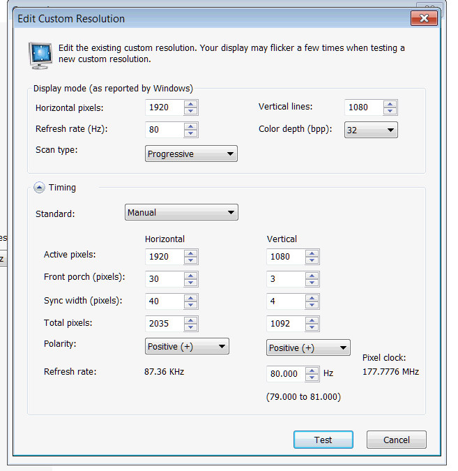 Yeah, that makes sense. Problem is I dont know which front porch and sync width specify for that. I believe this current custom 80HZ setup for my Dell came from this forum a few years back, but I'm not particularly deeply familiar with aspects of overclocking RR.Mathematically, overclocking is just bandwidth bitbucket mathematics, assuming the firmware is VBI-size-insensitve. So, VT1092 80Hz (1092x80 = 87360, the scanrate) means at 72Hz, you can do 87360/72 = VT1213 at 72Hz. Or 87360/78 = VT1120 at 78Hz. As long as you don't increase Pixel Clock, you can sacrifice a smidge of vertical refresh rate into a larger VBI in this manner, keeping your overclocking within margins.