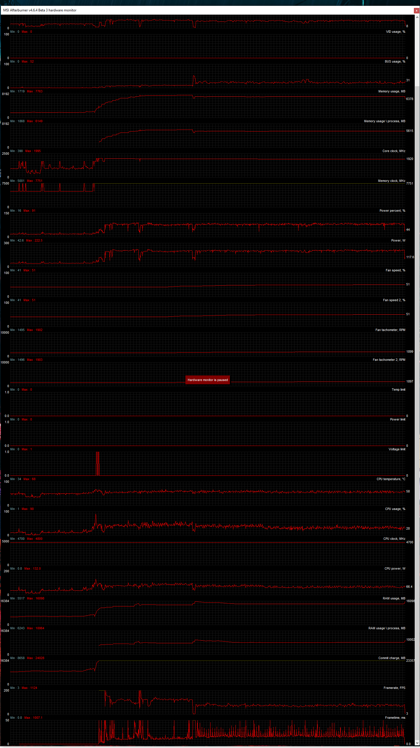 Also, this is what MSI Afterburner looked like when playing, the frametime at the bottom should speak for itself.